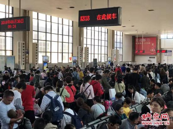 映象网快讯(记者 阮海峰 文/图)9月30日,映象网记者从中国铁路郑州局集团有限公司获悉,郑州局迎来国庆黄金周首个客流高峰日,预计发送旅客55.1万人,据客票预售情况分析,接下来的10月1日、6日、7日仍为黄金周客流高峰期,直通客流呈现两头高中间低的客流出行规律,管内客流以中转换乘、旅游观光、学生往返程为主。