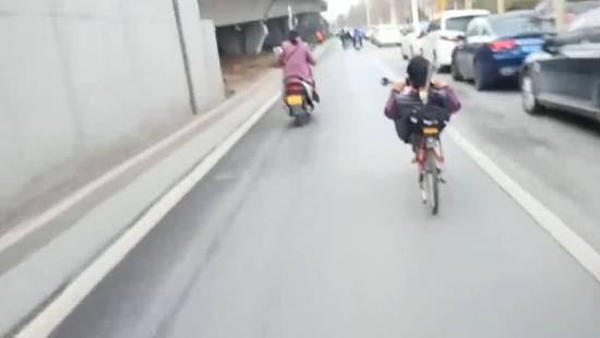 2019年3月18日上午7时许,郑州市淮河路西三环附近,一名年约五十多岁的大叔,斜躺在一辆奇怪的自行车上,脚蹬向前,身体后仰一路向南骑行着。